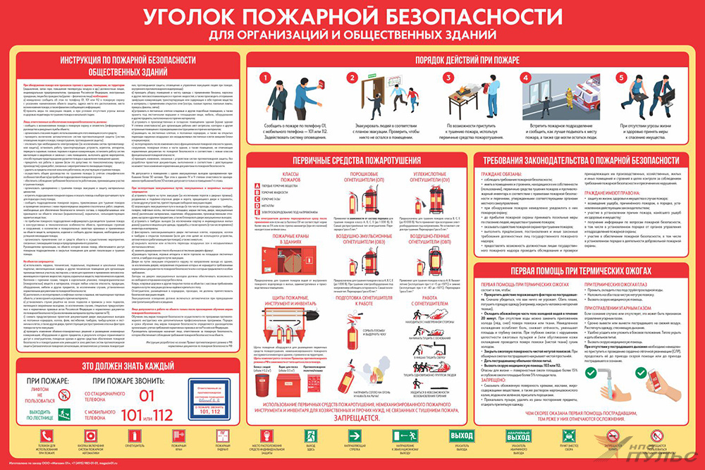 Плакат "Уголок пожарной безопасности", А1 на самоклеящейся пленке НПО ПУЛЬС (900*600мм)