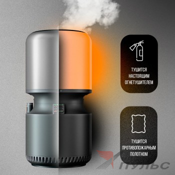 - Безопасный дым, имитация отблесков пламени и звук горения