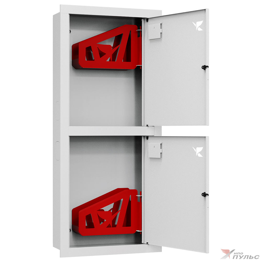 Шкаф пожарный ШПК-Пульс-320-21 ВЗБ предназначен для размещения двух пожарных рукавов, встраиваемый, устанавливается в нишах стен, имеет закрытое исполнение, шкаф окрашен в белый цвет, дверцы открываются в правую сторону, на дверцах установлен почтовый замок.