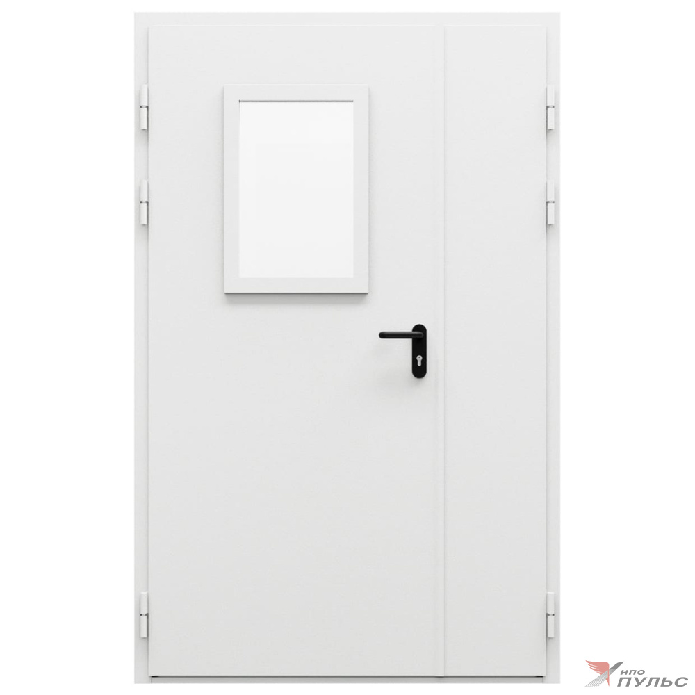 Дверь противопожарная металлическая двупольная ДПМ-Пульс-02/30К (EI 30) с остеклением равнопольная угловая коробка (1300-2075, Правая, RAL 7035)