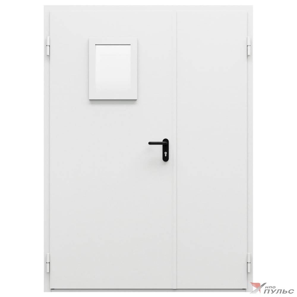 Дверь противопожарная металлическая двупольная ДПМ-Пульс-02/60 (EI 60) с остеклением неравнопольная угловая коробка (1450-2075, Левая, RAL 7035)