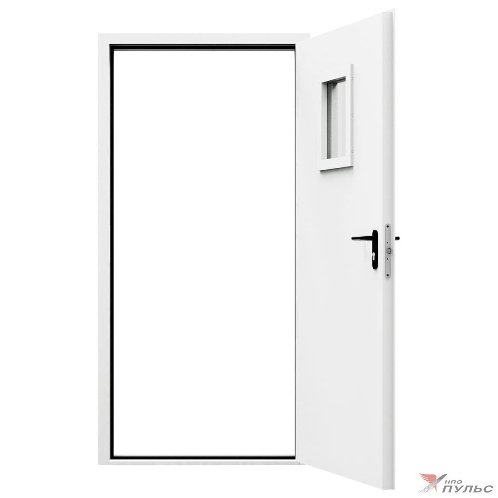 Дверь противопожарная металлическая однопольная типа ДПМ-Пульс-01/60К (EI 60) с остеклением угловая коробка, 0950-2075, Правая, RAL 7035